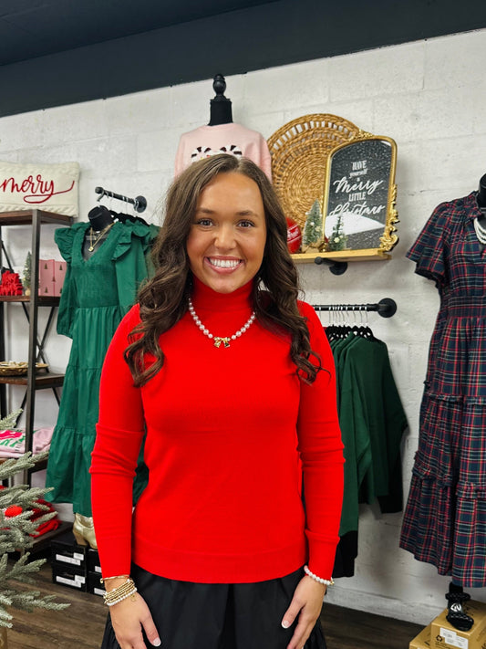 Solid Red Long Sleeves Basic Turtleneck