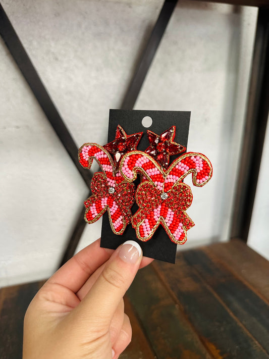 Pink Candy Cane Beaded Earrings