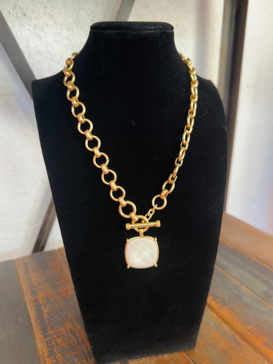 White Square Stone Pendant Necklace