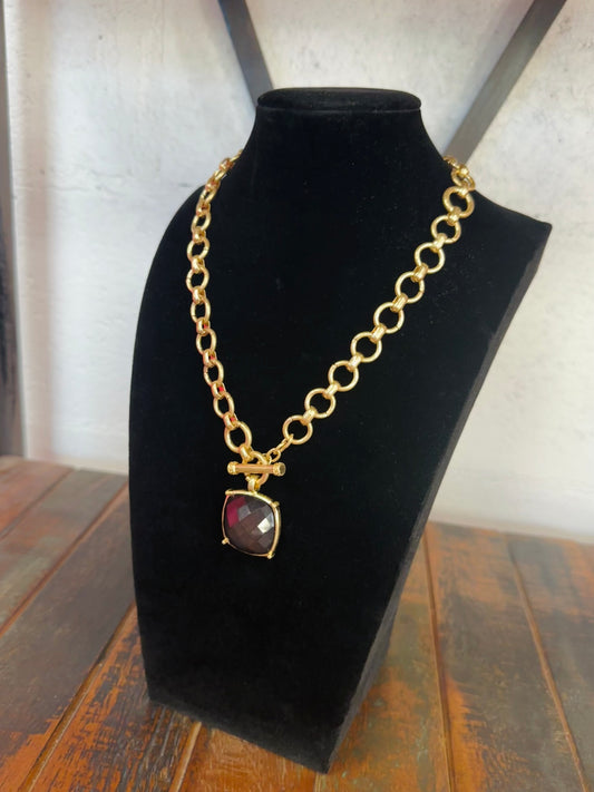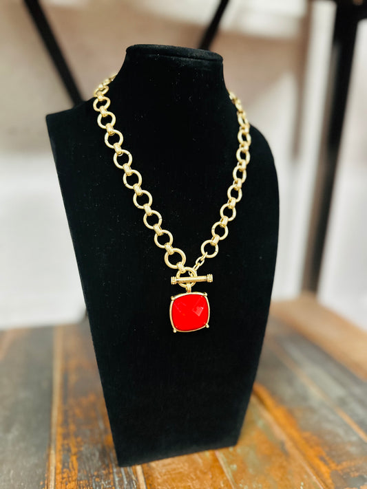 Red Square Stone Pendant Necklace