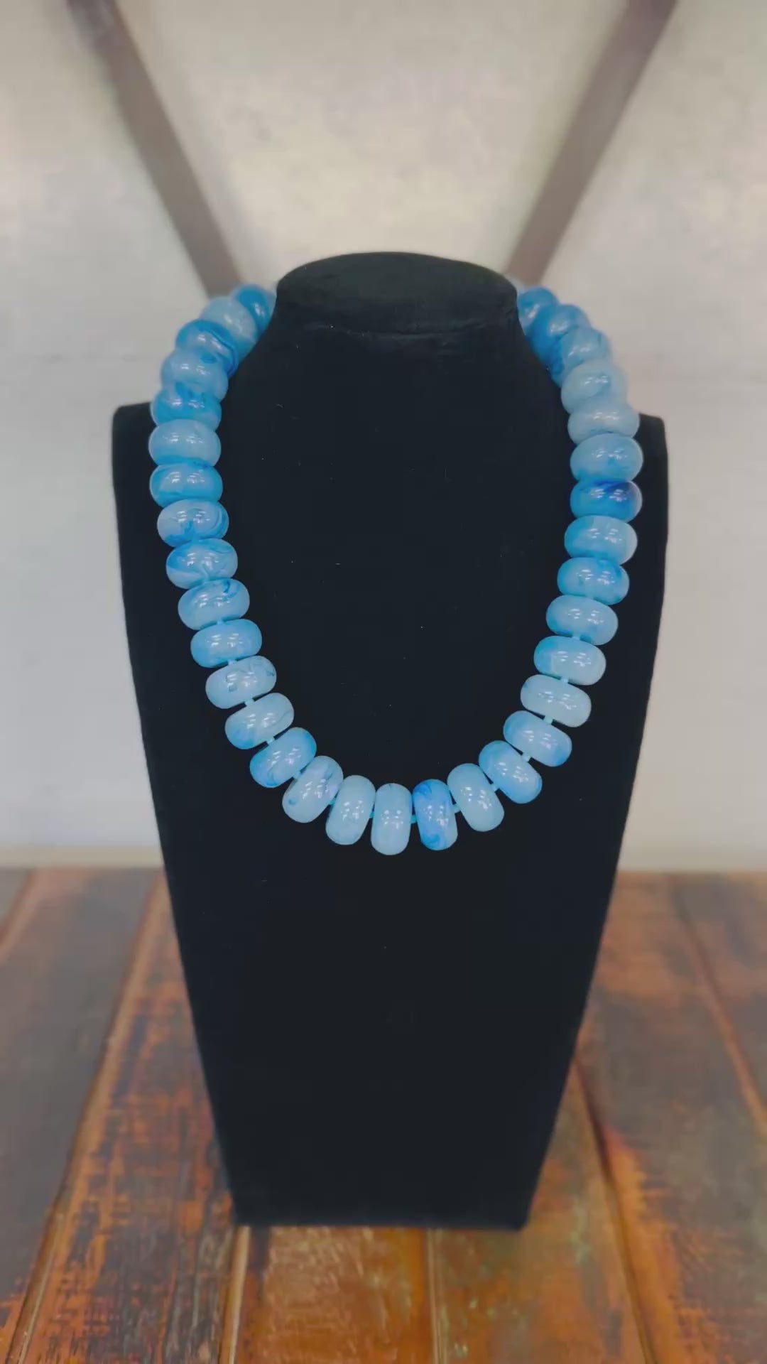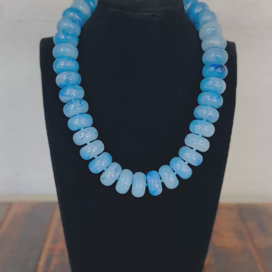 Blue Chunky Marble Bead Necklace