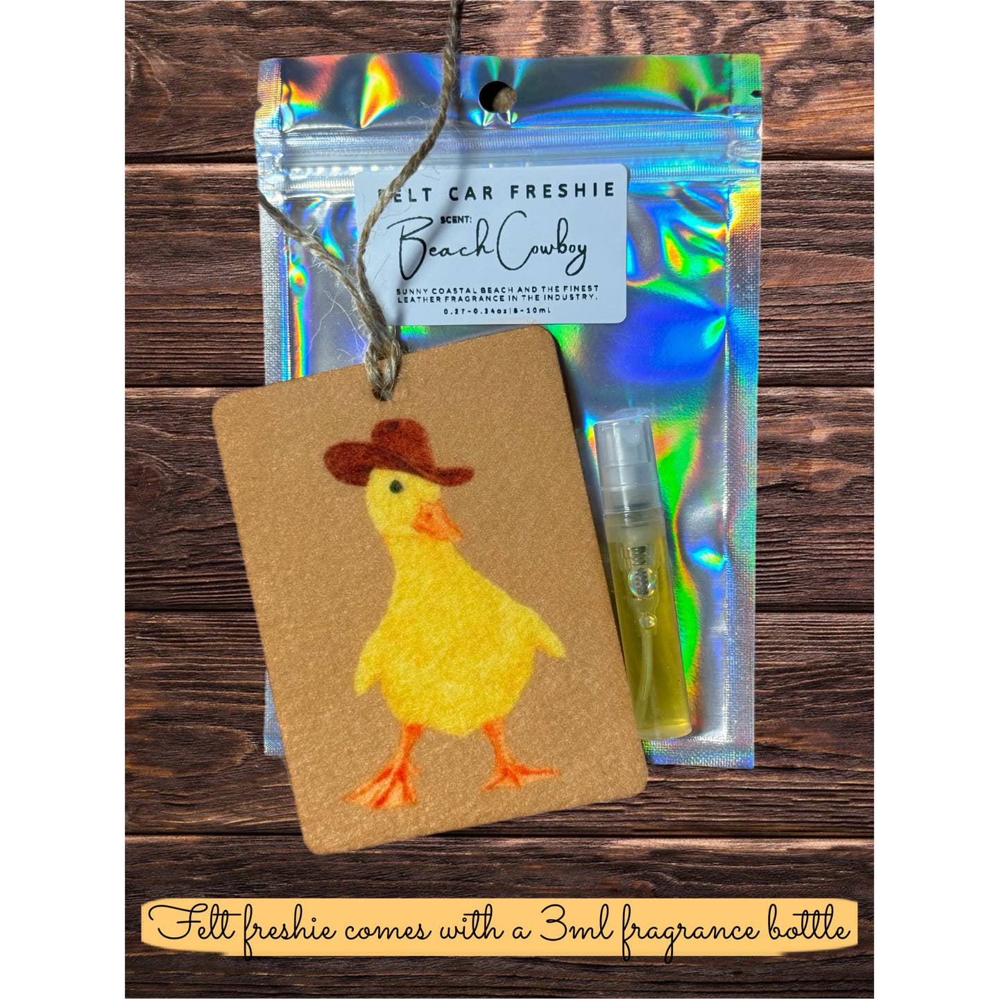 This Cowboy Duck Car Freshie is available in two different scents; Butt Naked & Black Ice.