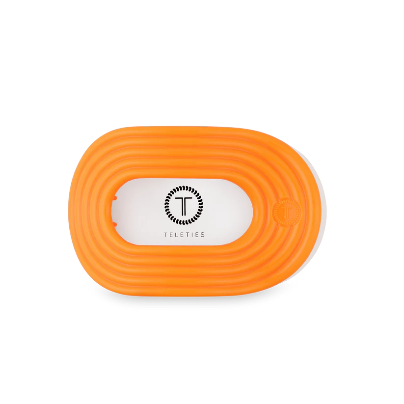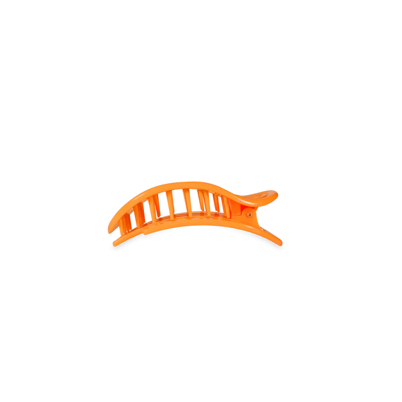 Lay flat and relax with the new TELETIES Day Rave Flat Round Hair Clip in Neon Orange. This hair clip is designed to allow you to lay back flat, do yoga, or sit comfortably in a seat with a headrest, and it is made with the same material that is nearly unbreakable. Featuring a grooved texture for a dimensional finish.