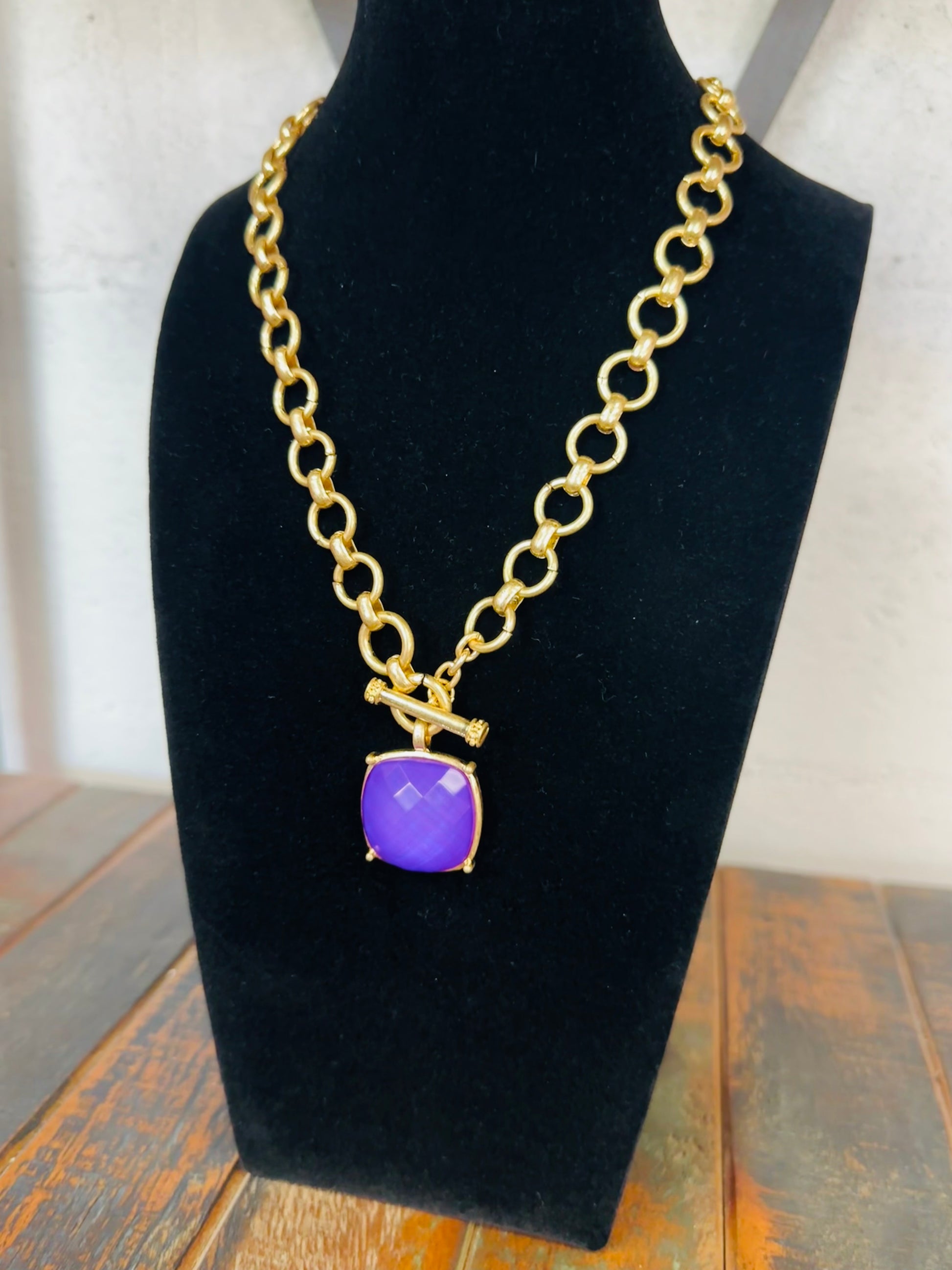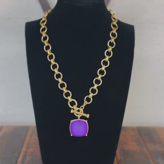 Purple Square Stone Pendant Necklace