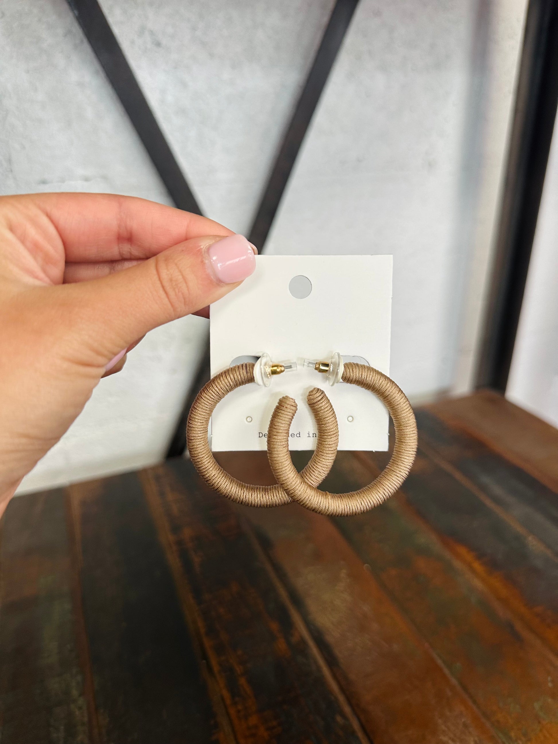 Introducing Tan Thread Hoops, the lightweight and staple earring. Our hoops are crafted from lightweight metal to reduce strain on the earlobe while providing lightweight comfort all day long. Enjoy the modern style of simple Tan Thread Hoops.