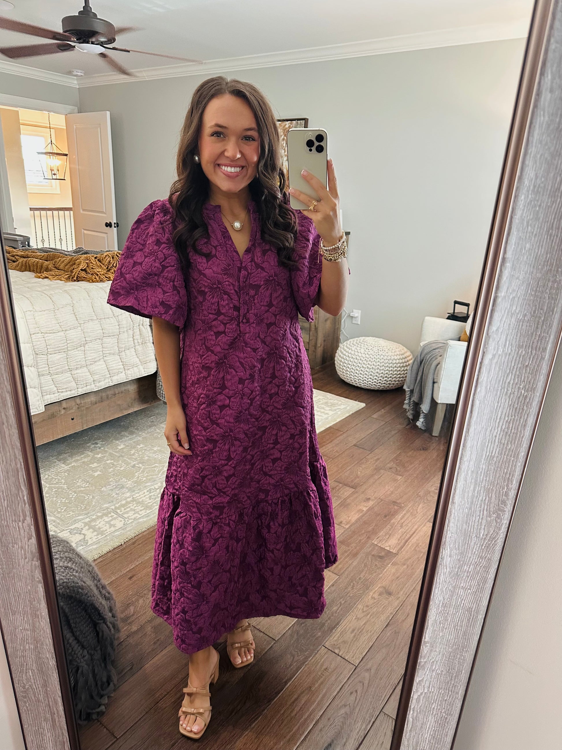 The Ada Plum Jacquard Floral Midi Dress