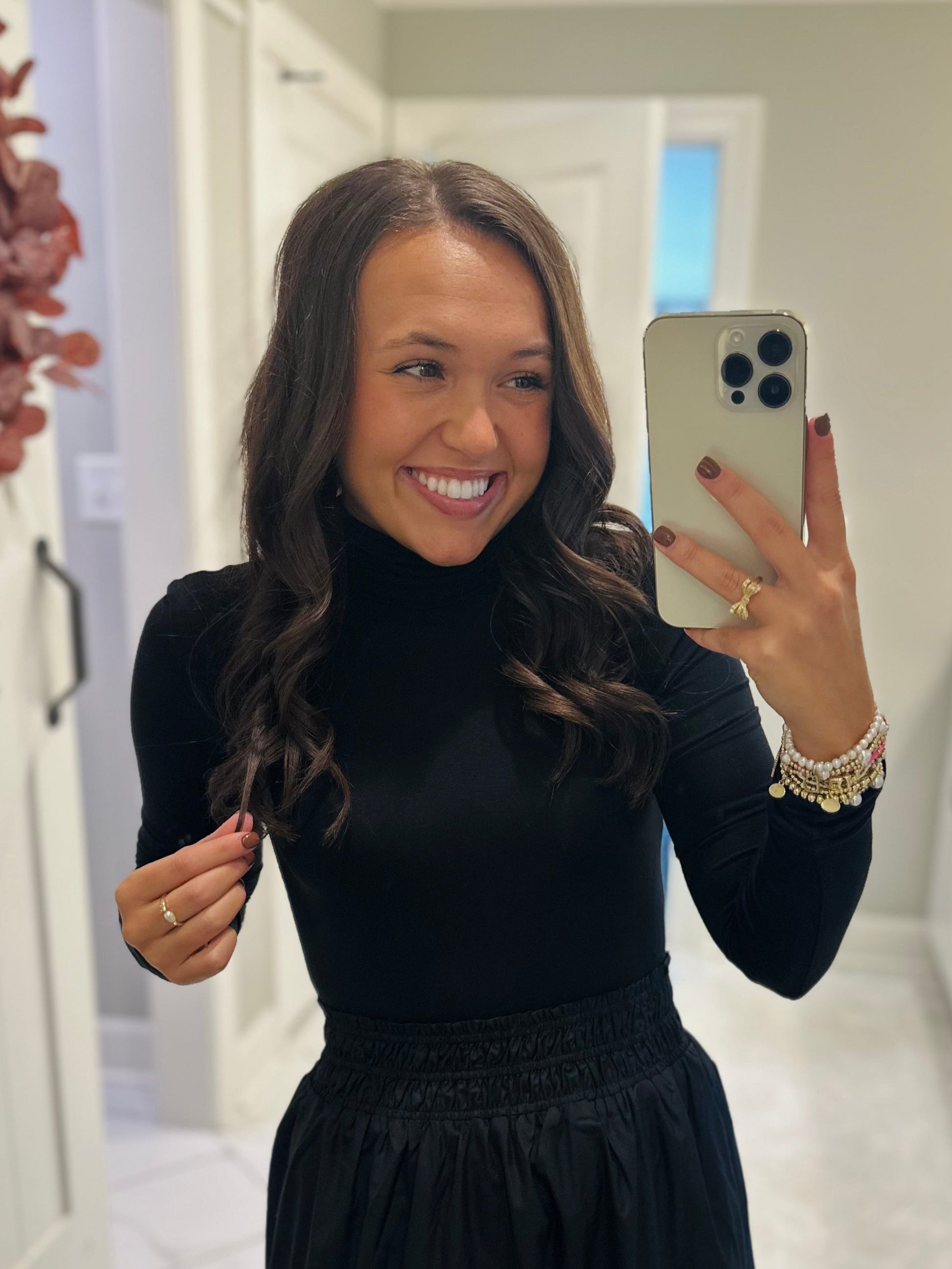 Introducing you to your new favorite turtleneck!! This top is soooo soft, comfy, and perfect to wear by itself or as a layering piece. With stretchy and breathable material, this slim-fitted turtleneck will be your go-to top this fall and winter!