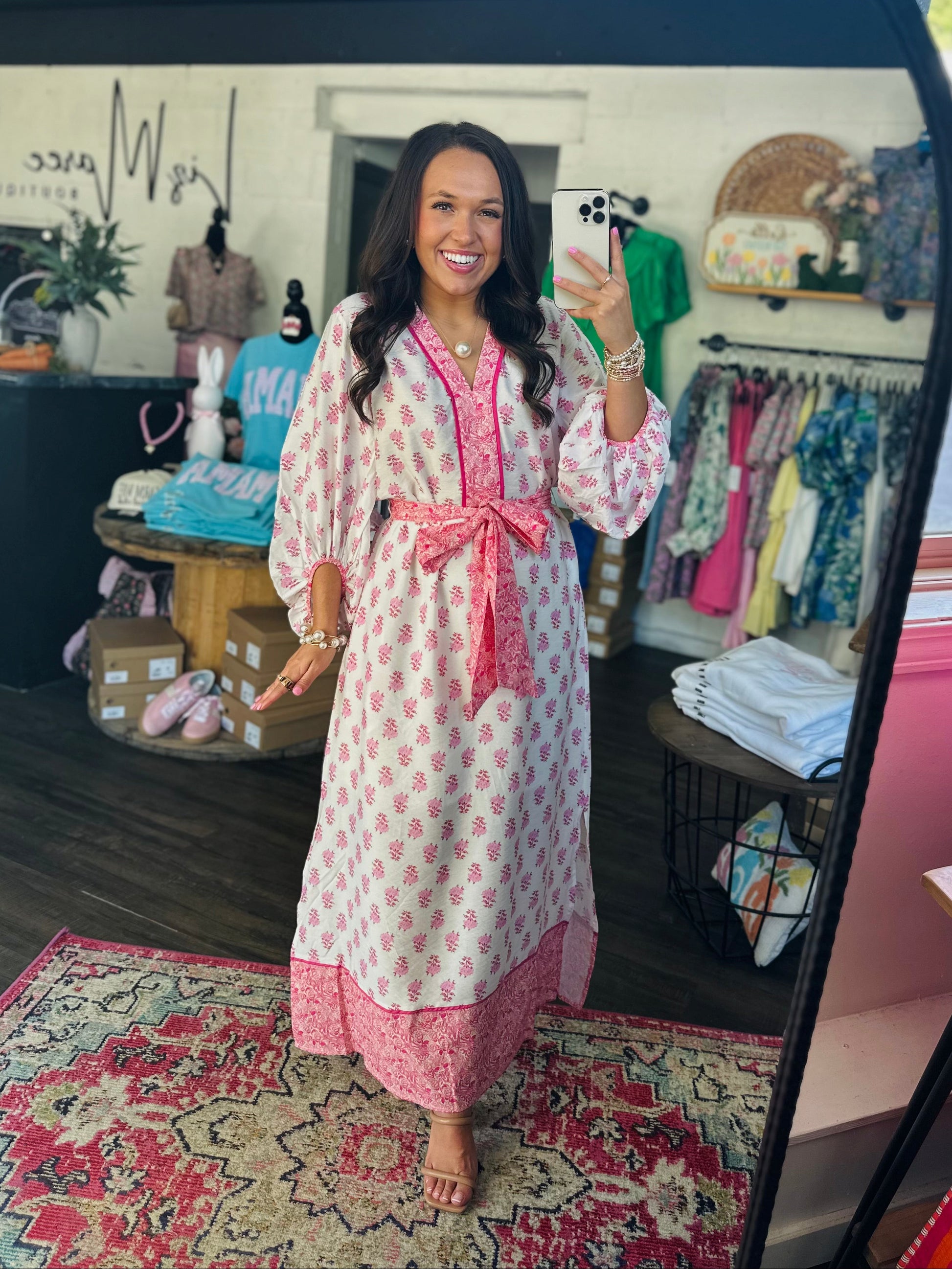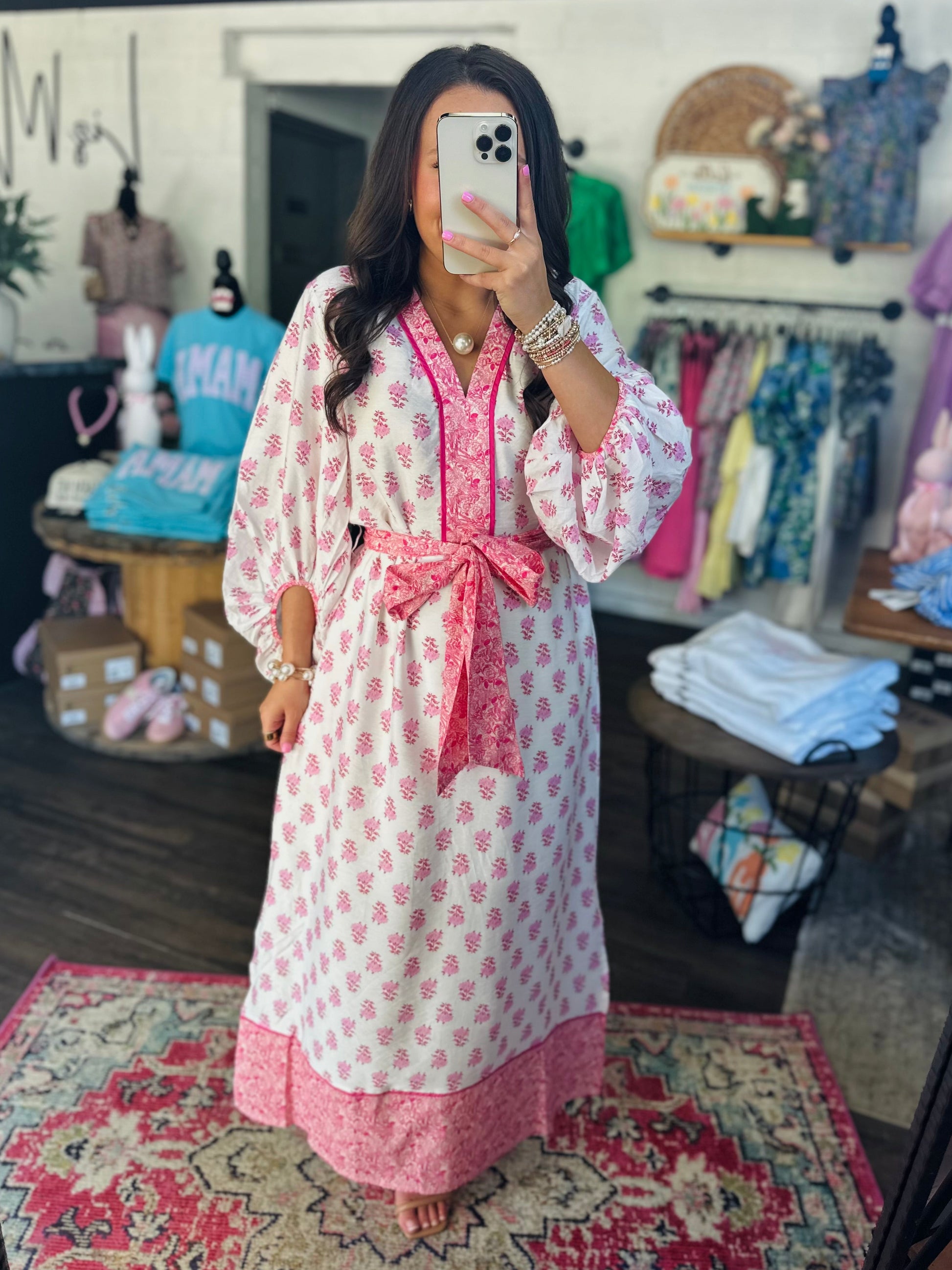 Elegant, classy, and timeless š This new dress is absolutely stunning! It features a beautiful white and pink floral print with 3/4 length sleeves, a slight v-neck neckline, and a belt tie at waist.Ā This dress has side pockets and it is lined. It's designed to fit everyone, creating an easy but flattering look!Ā