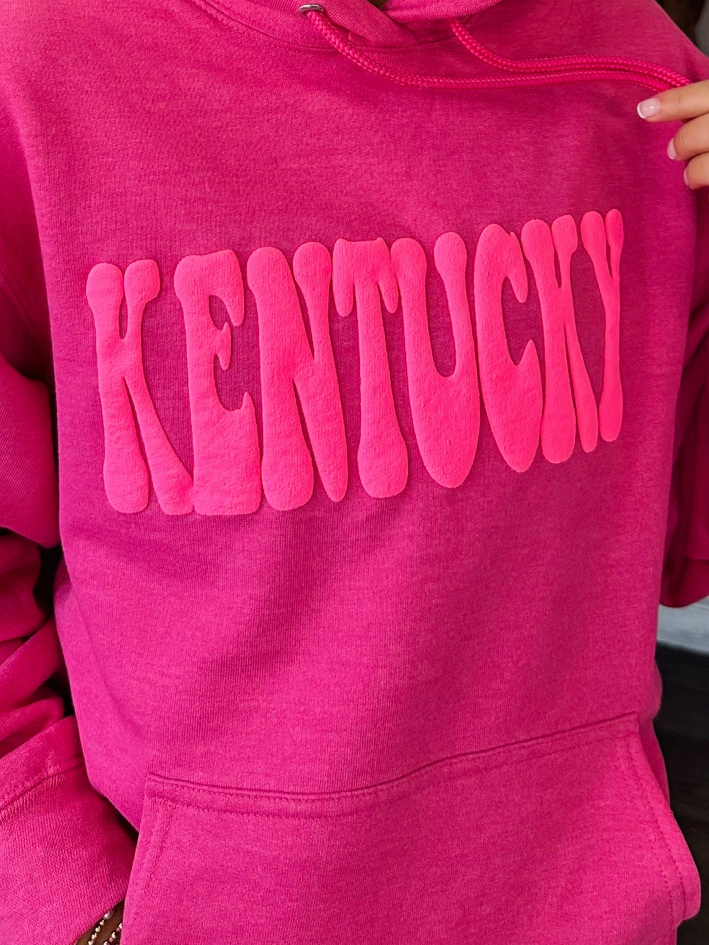 It's hoodie season!!! Stay warm and cozy in this new adorable KENTUCKY sweatshirt! This crewneck features a hot pink puff printed design on a hot pink fleece Port & Co sweatshirt. Talk about the SOFTEST sweatshirt ever with the cutest design!!