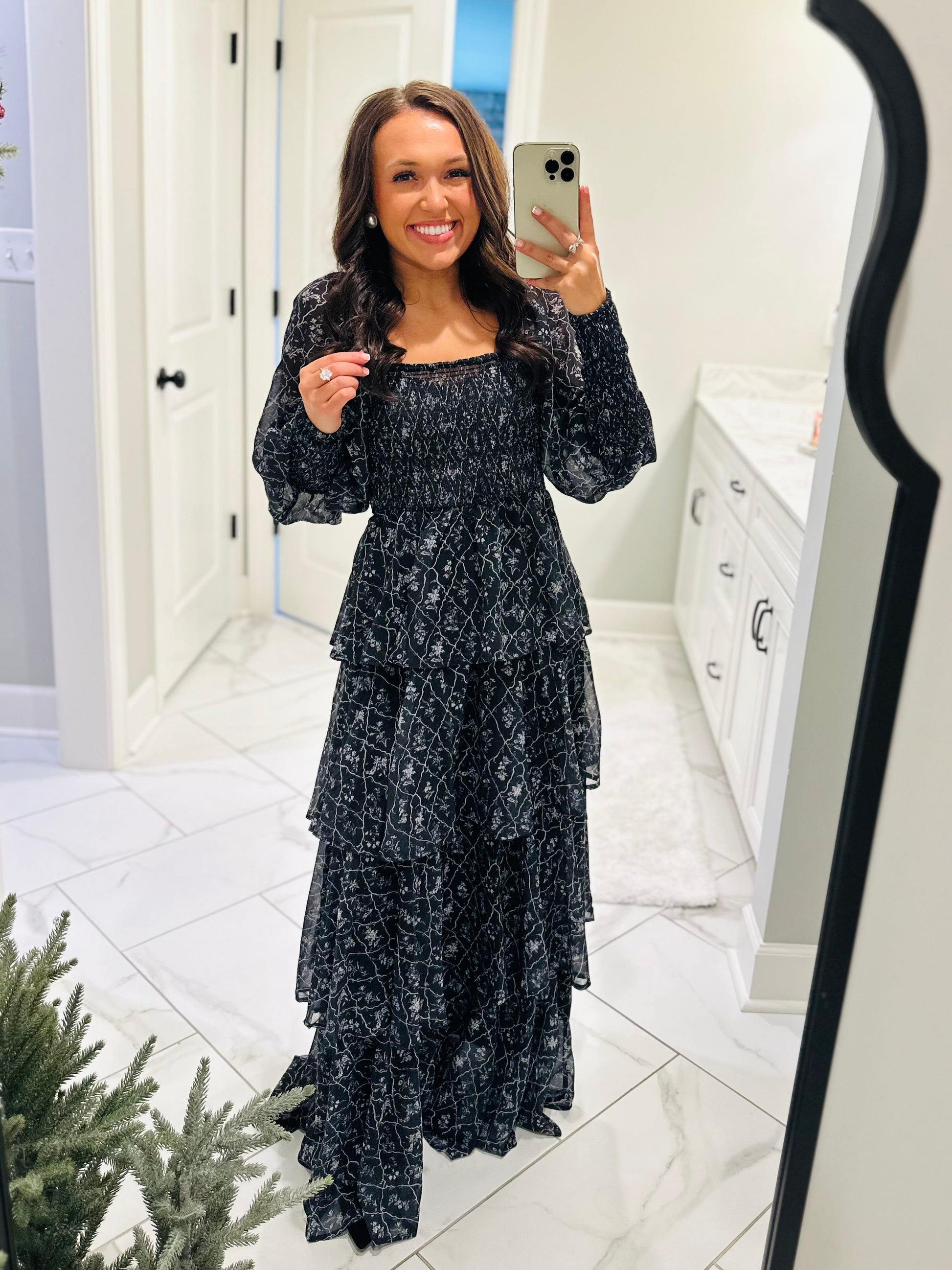 The Mae Black Ruffle Tiered Long Sleeve Maxi Dress