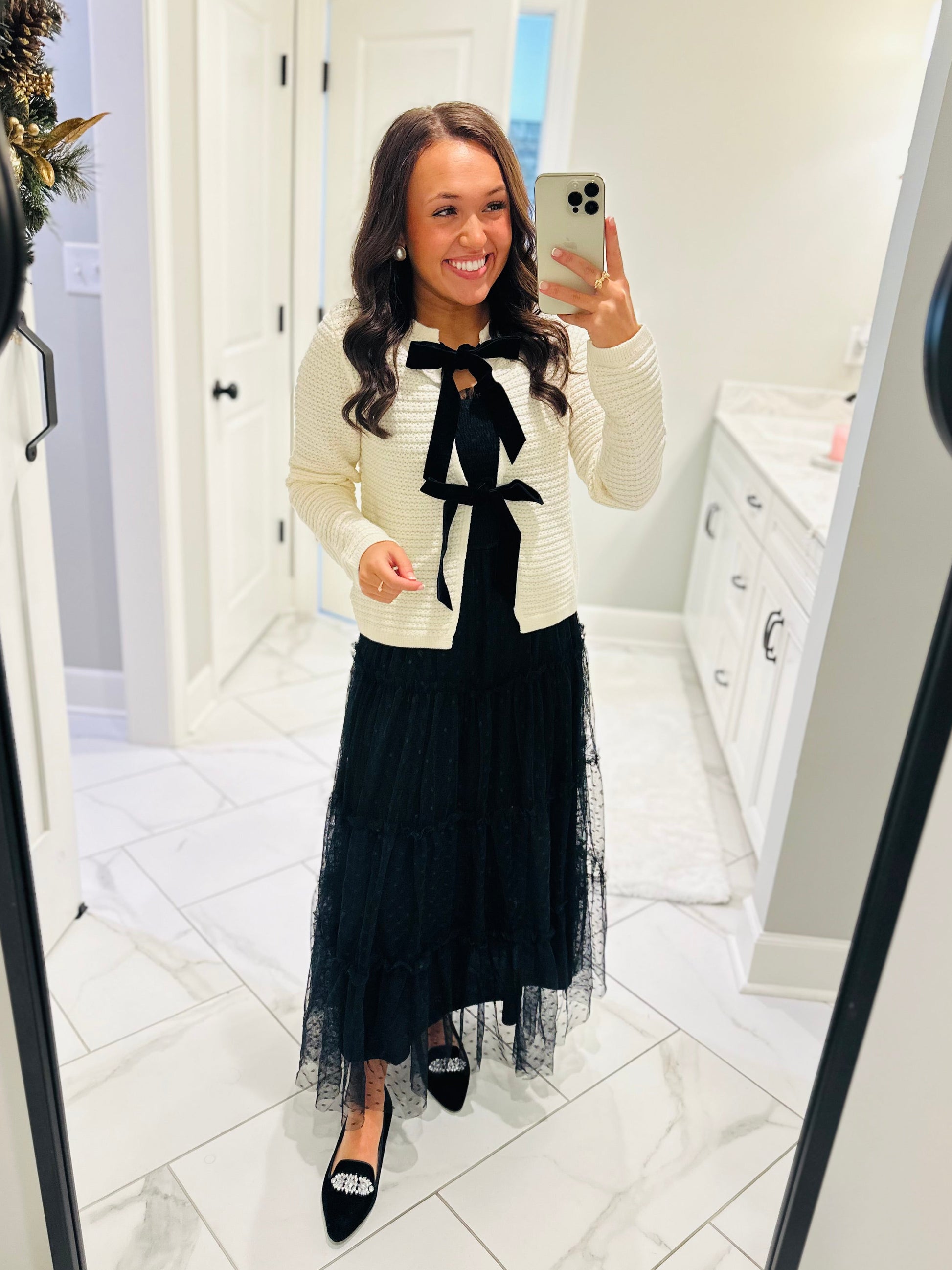 https://lizmareeboutique.com/products/the-sofia-cream-black-velvet-bow-cardigan
