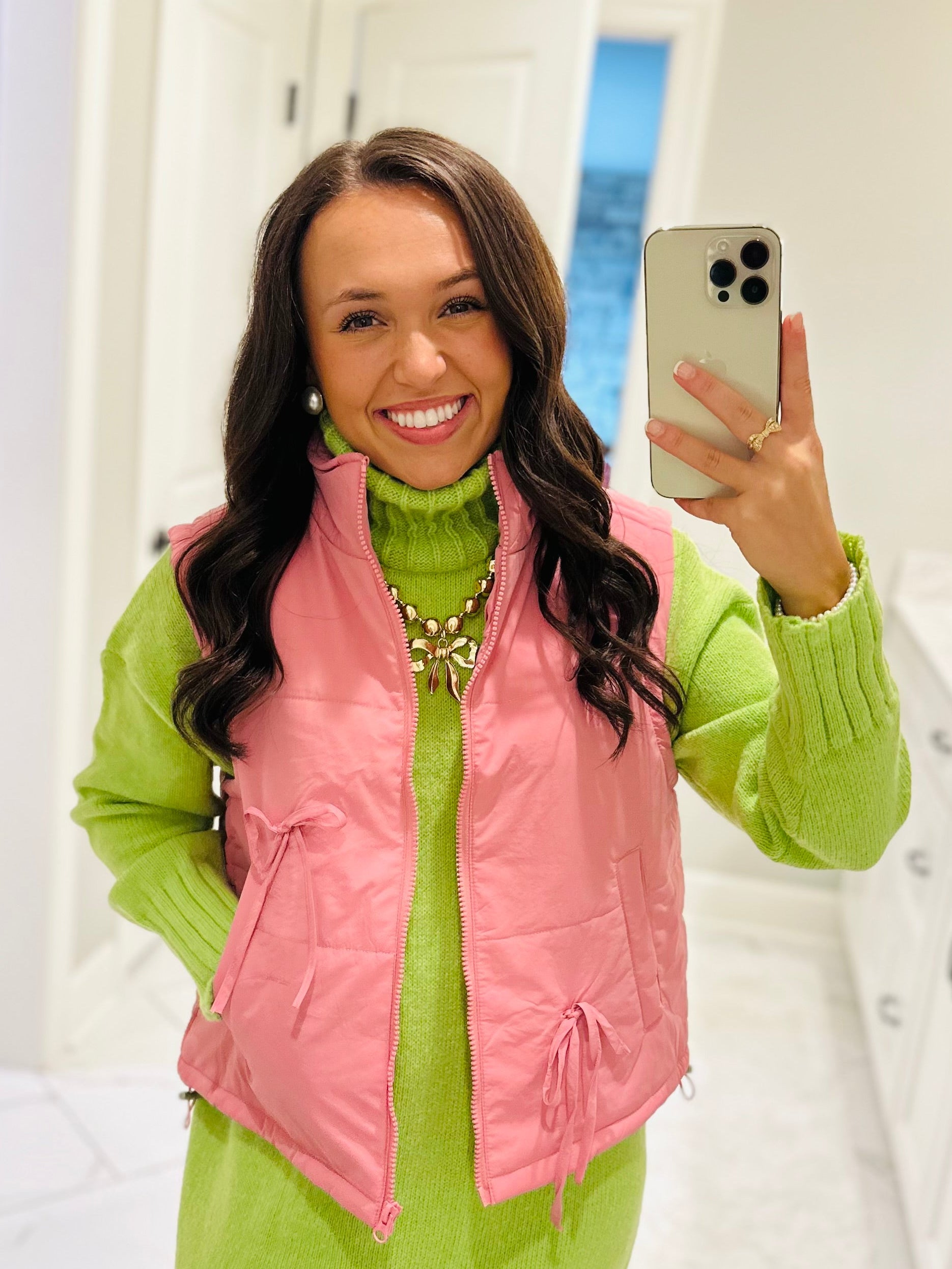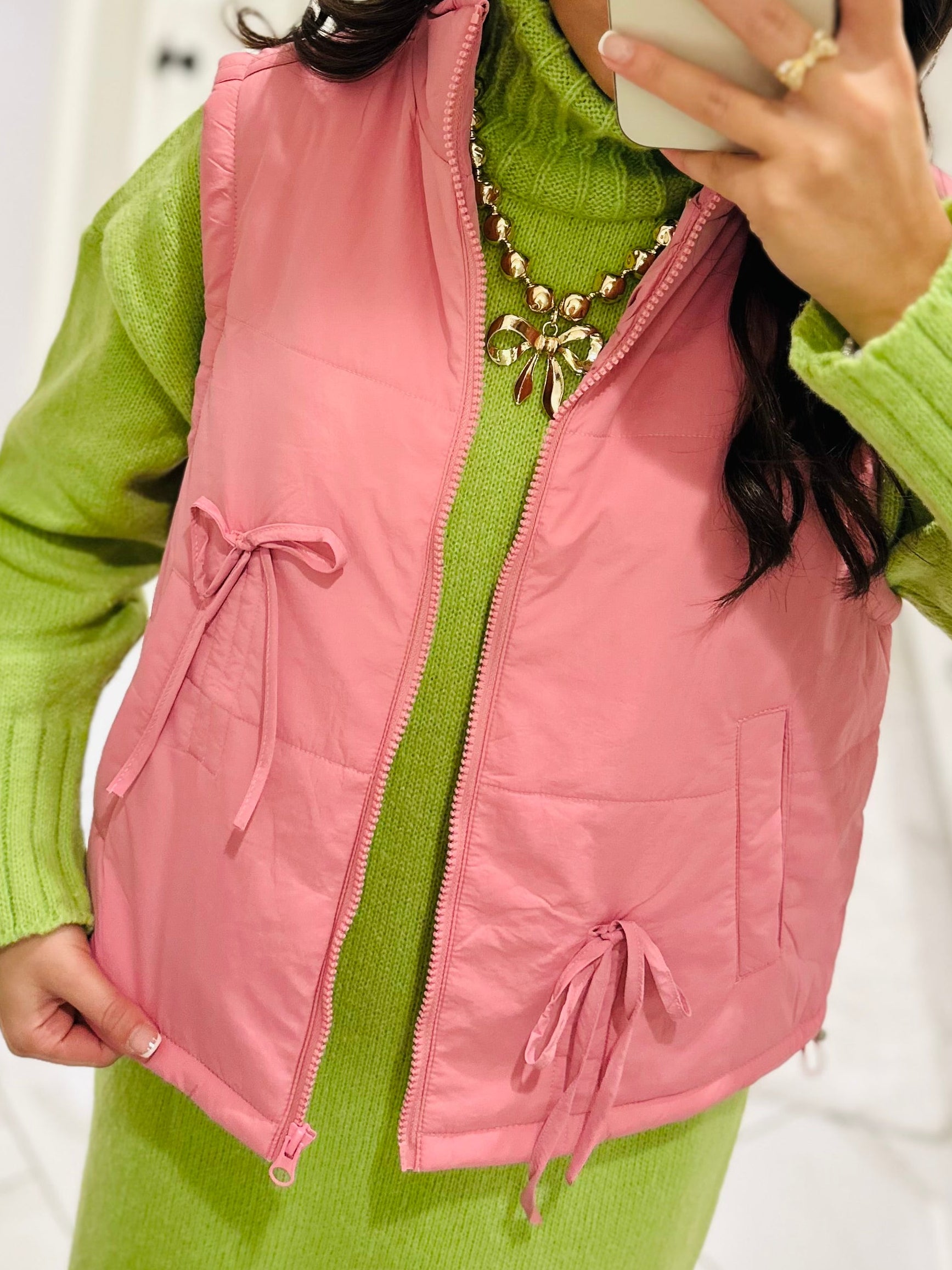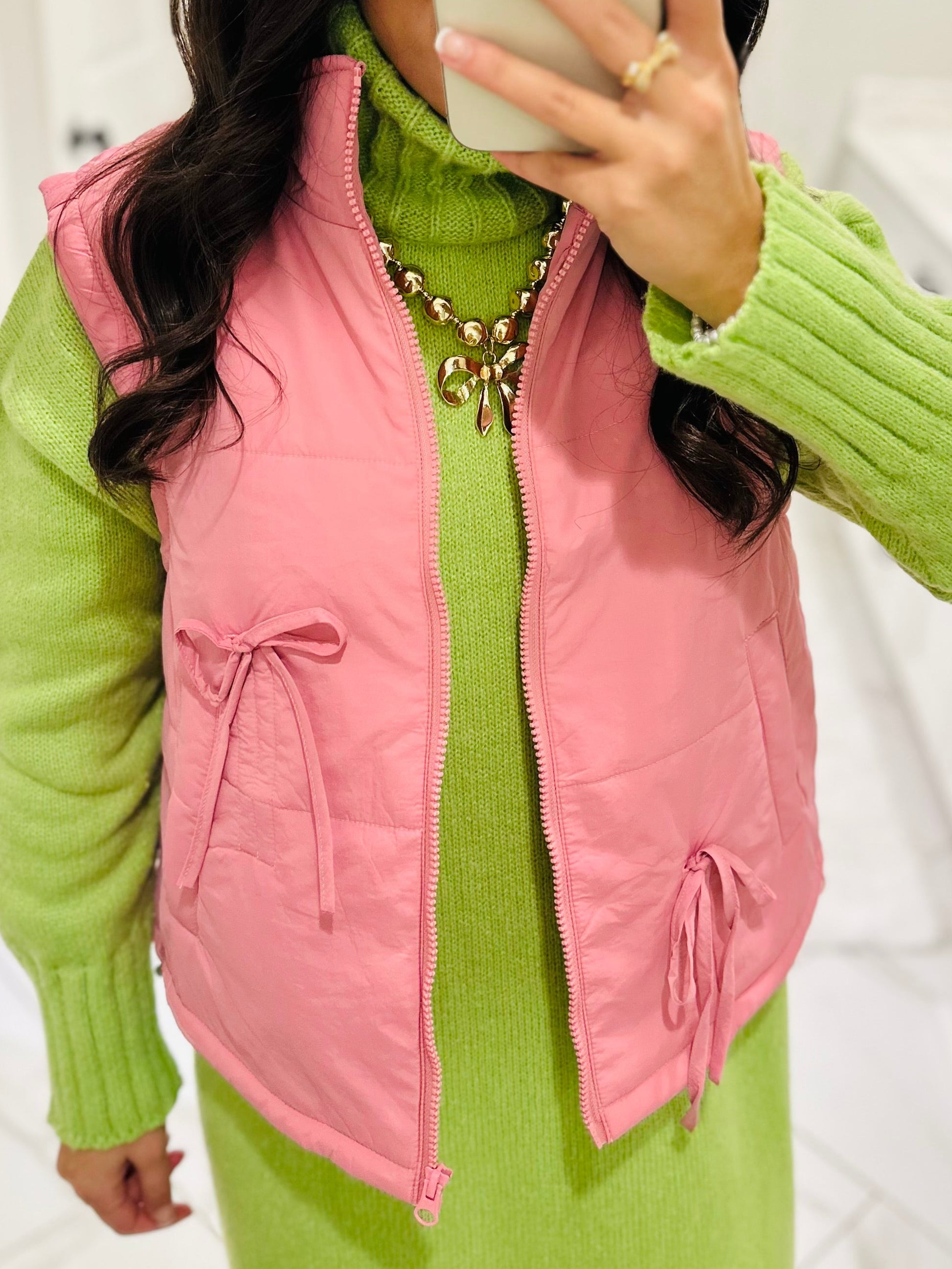 The Rose Pink Bow Detail Vest