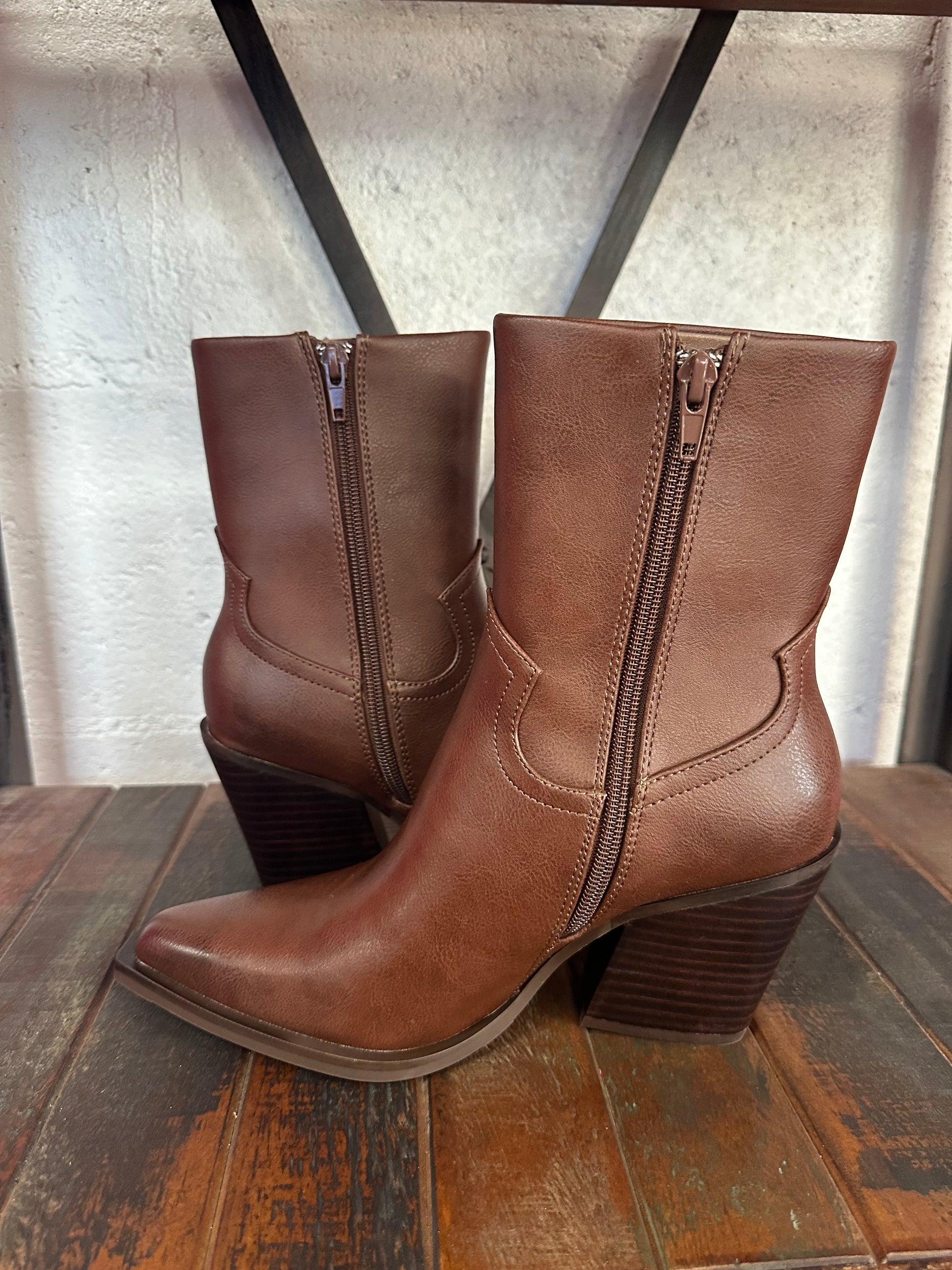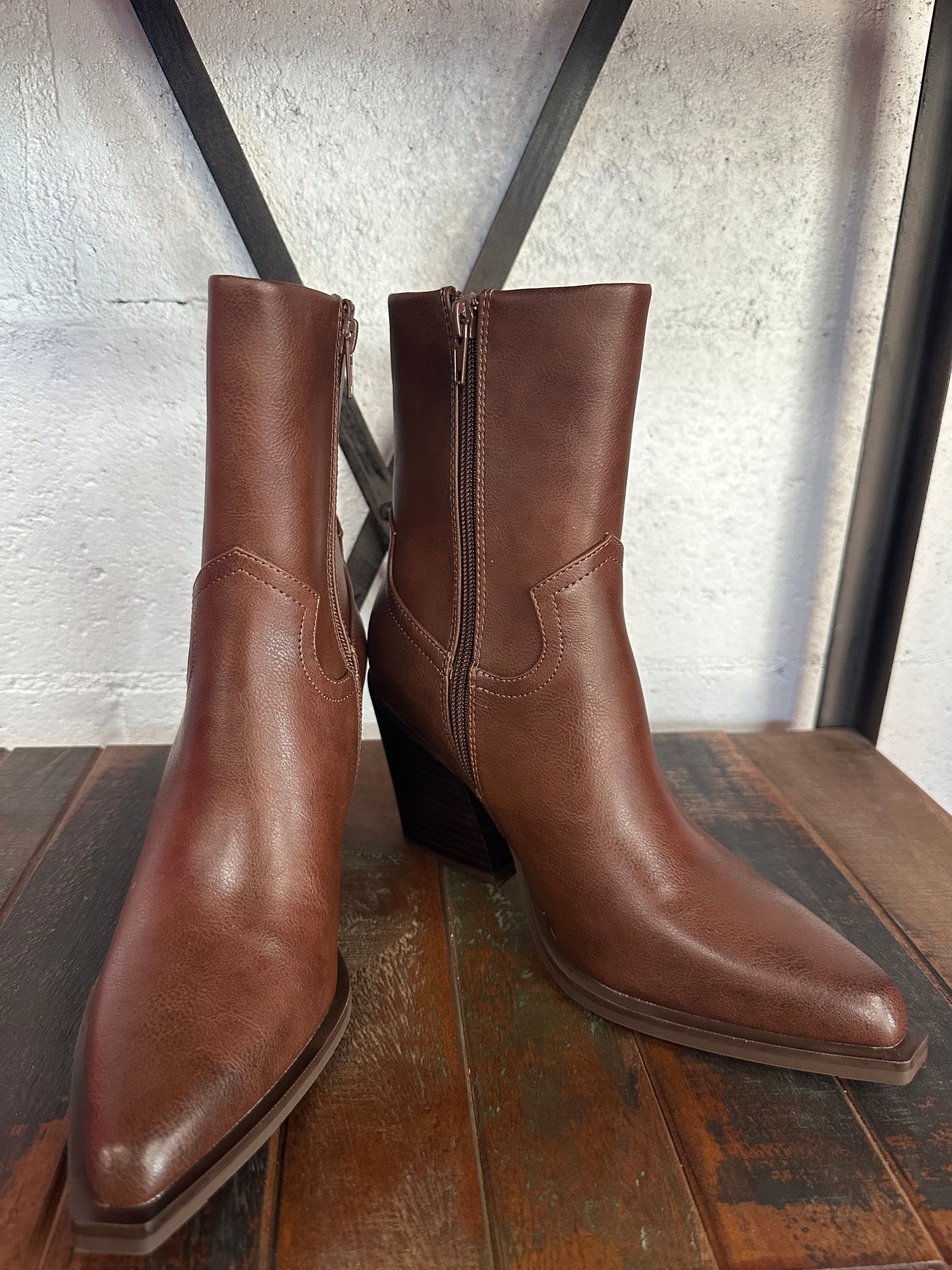 Step into style with our Victoria Cognac Boot. Crafted from premium faux black leather, these boots feature a sleek design with a striking angular heel. Enjoy all-day comfort with a cushioned insole and flexible sole, making them the perfect blend of fashion and ease.
