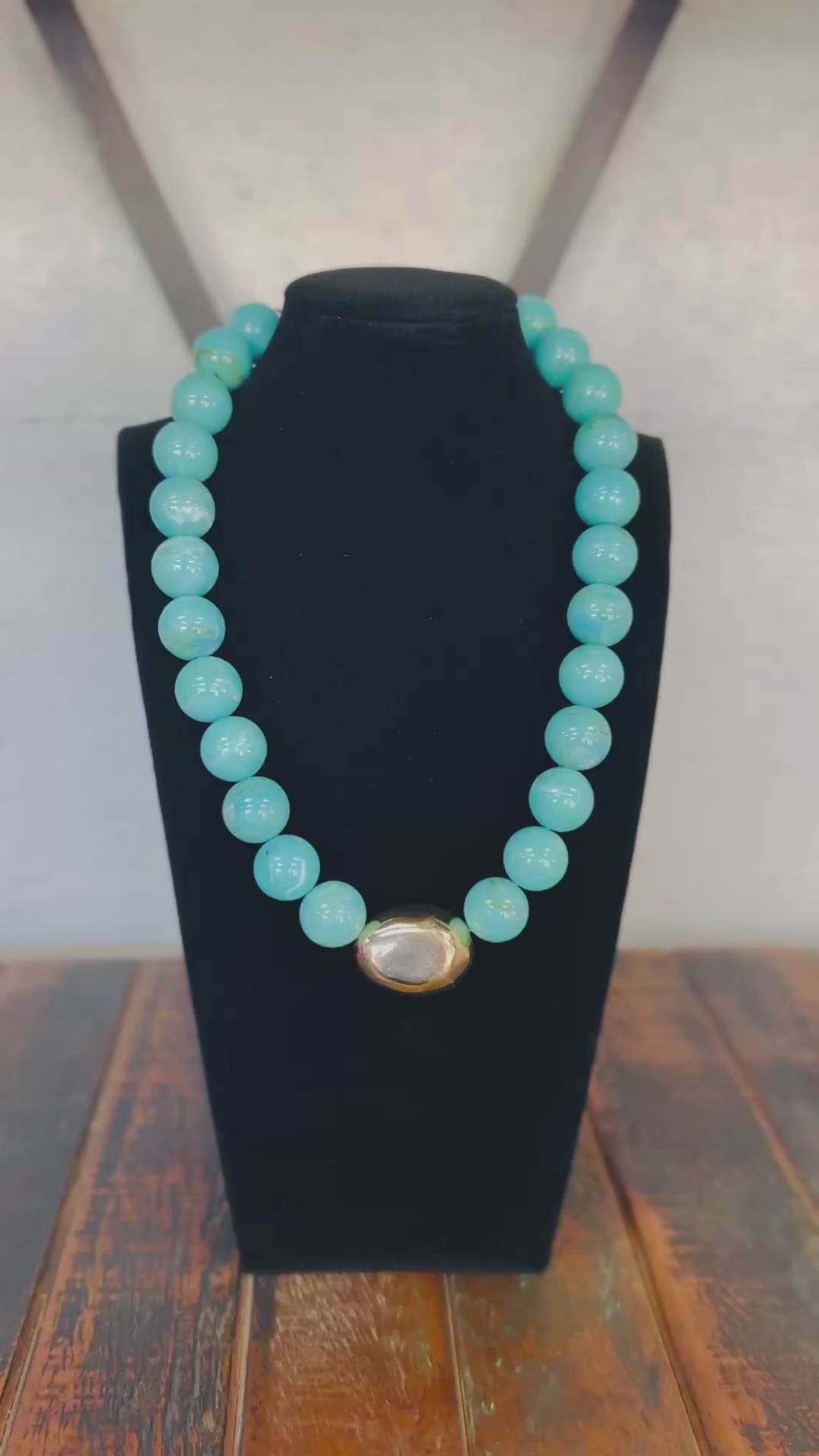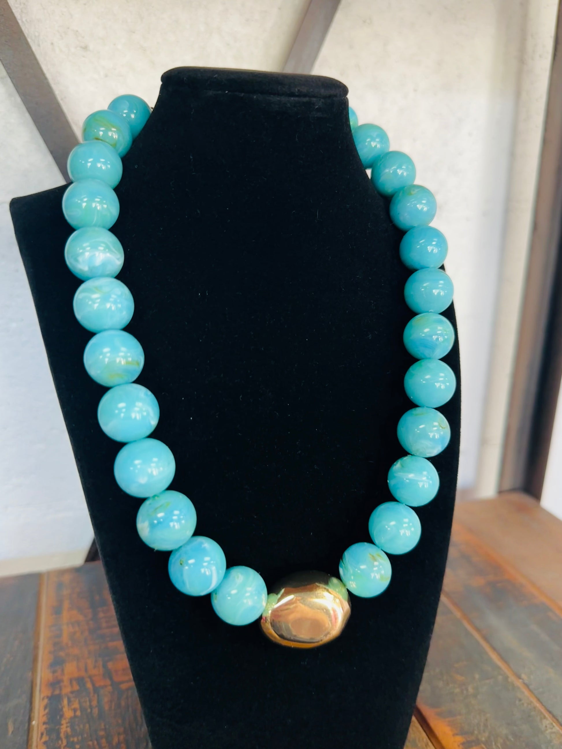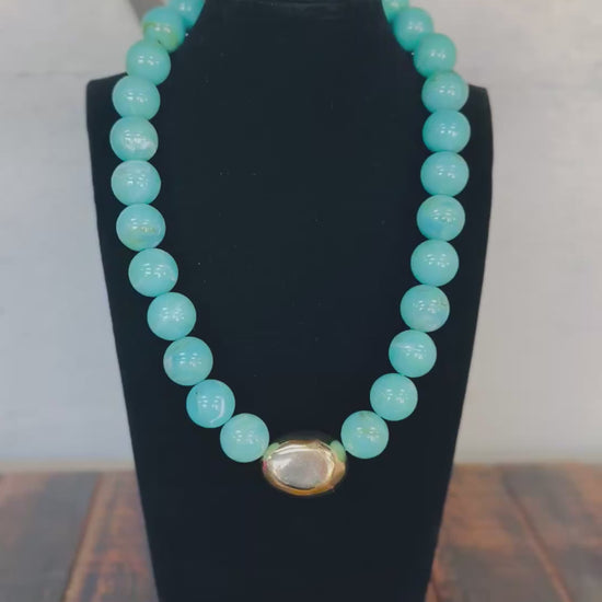 Turquoise Marble Beaded Necklace with Gold Statement Bead